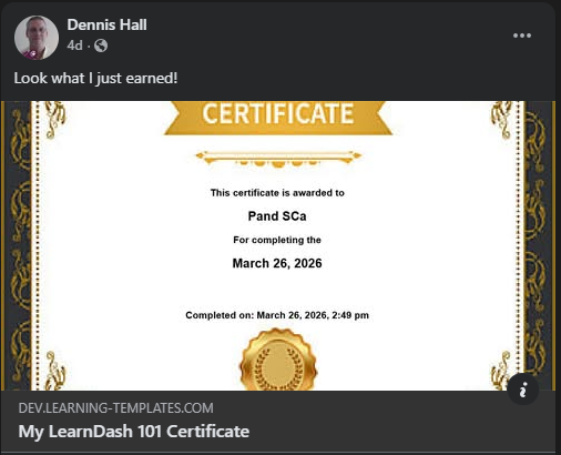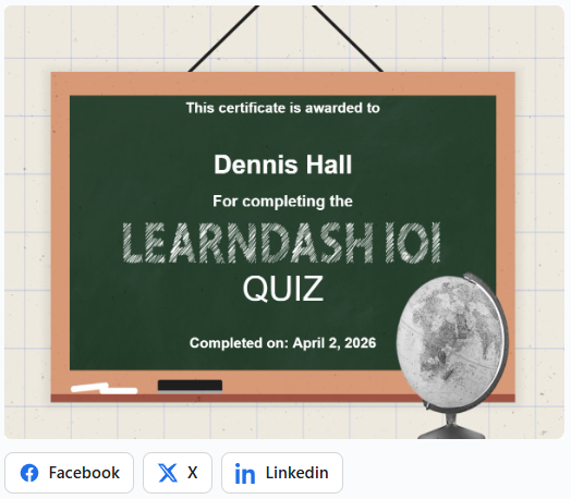 Let your students preview, open, and share their LearnDash Course and Quiz certificates in any page or post!