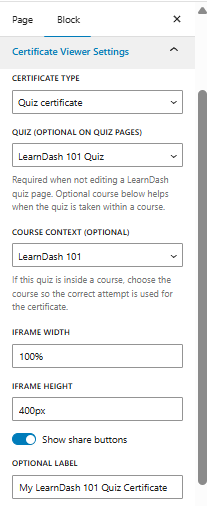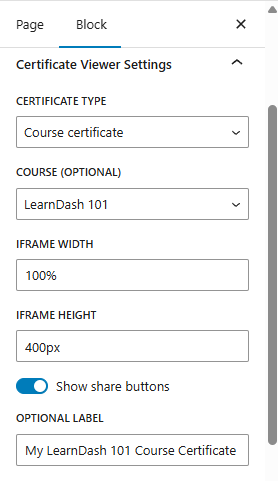 Add the LearnDash Certificate Viewer/ Share block, widget, or shortcode into any page, post, custom post type, sidebar, or anywhere else you want!